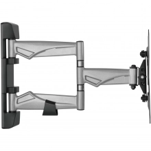 Конструкция кронштейна наклонная, поворотная и выносная, что позволяет гибко настраивать телевизор под любым углом. Угол наклона ±45° и угол поворота ±90° обеспечивают максимальный комфорт при просмотре контента из разных точек комнаты. Такая мобильность конструкции помогает оптимально организовать пространство и получить самую лучшую картинку независимо от расположения мебели.