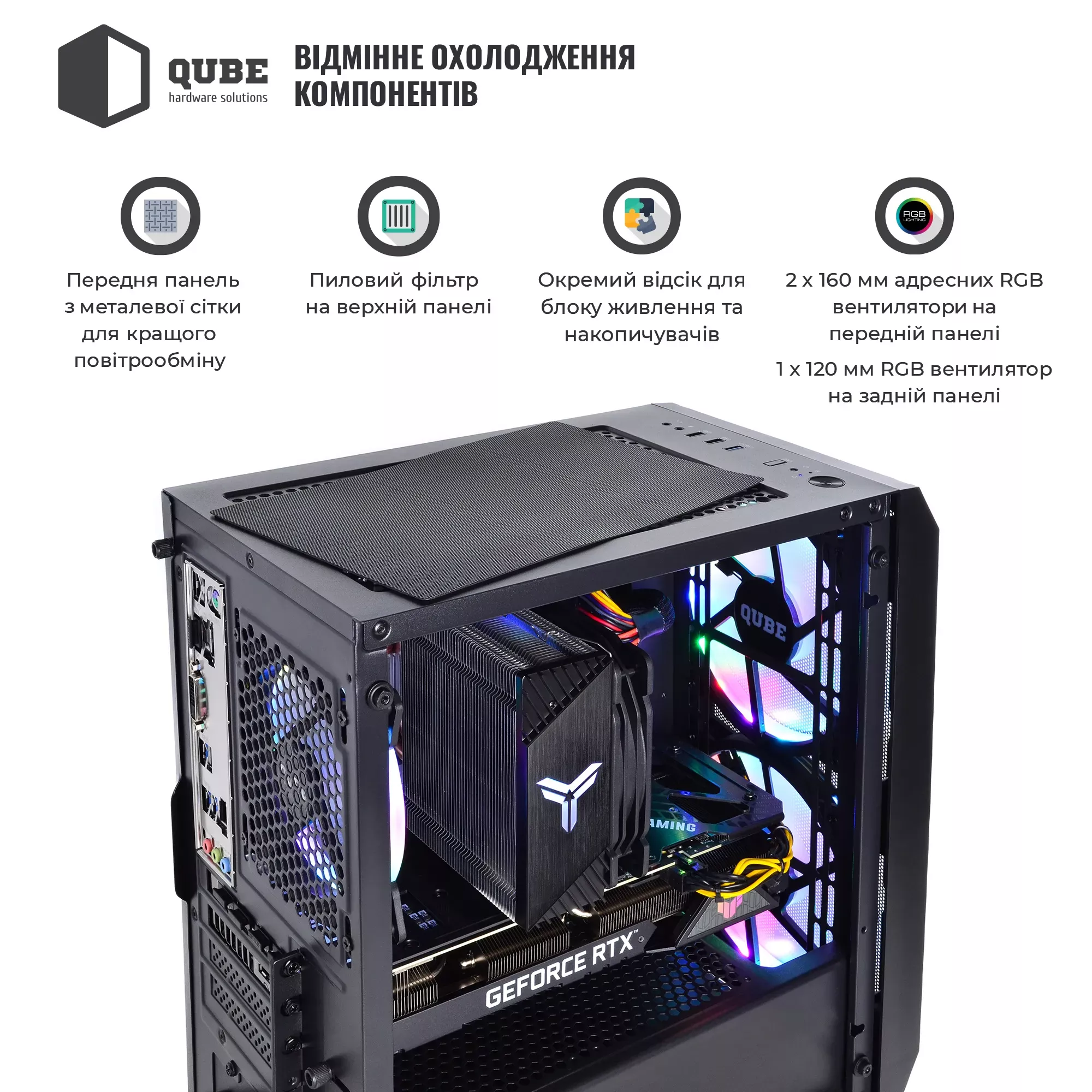 Корпус QUBE NEPTUNE Mini с RGB-подсветкой не только стильно выглядит, но и обеспечивает отличную вентиляцию, что важно для поддержания оптимальной температуры компонентов при интенсивной нагрузке. Блок питания на 600 Вт гарантирует стабильную работу системы. Материнская плата PRIME A620M-K обеспечивает надежную основу для всех этих мощных компонентов, поддерживая все необходимые интерфейсы и возможности для апгрейда. Системный блок QUBE - это идеальный выбор для тех, кто ищет сочетание мощности, стиля и надежности.