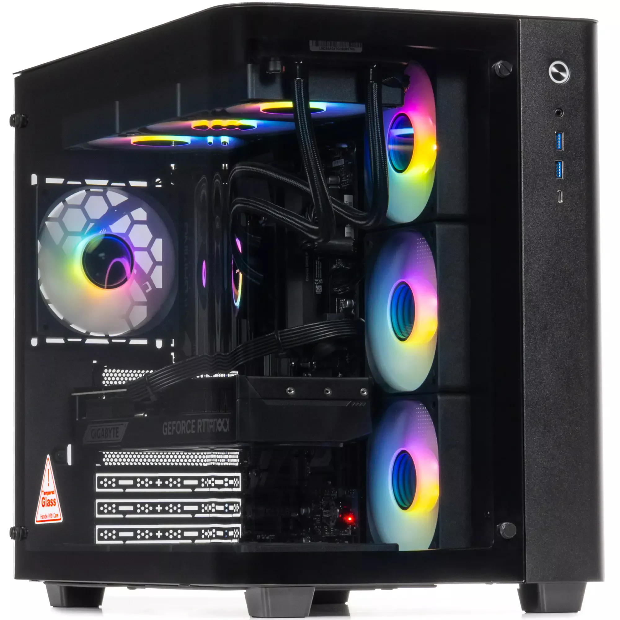В сердце конфигурации — восьмиядерный процессор AMD Ryzen™ 7 9800X3D с частотой 4.7–5.2 ГГц и разблокированным множителем, что открывает простор для оверклокинга. Его дополняет система водяного охлаждения WaterCooler 360mm, обеспечивающая стабильную работу даже при максимальных нагрузках.