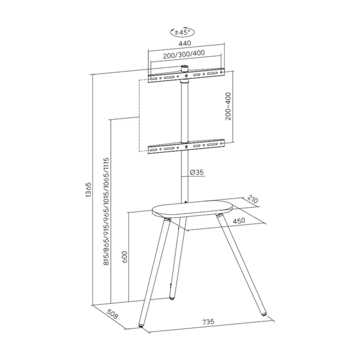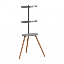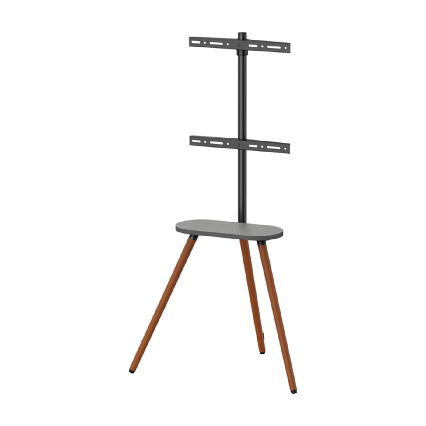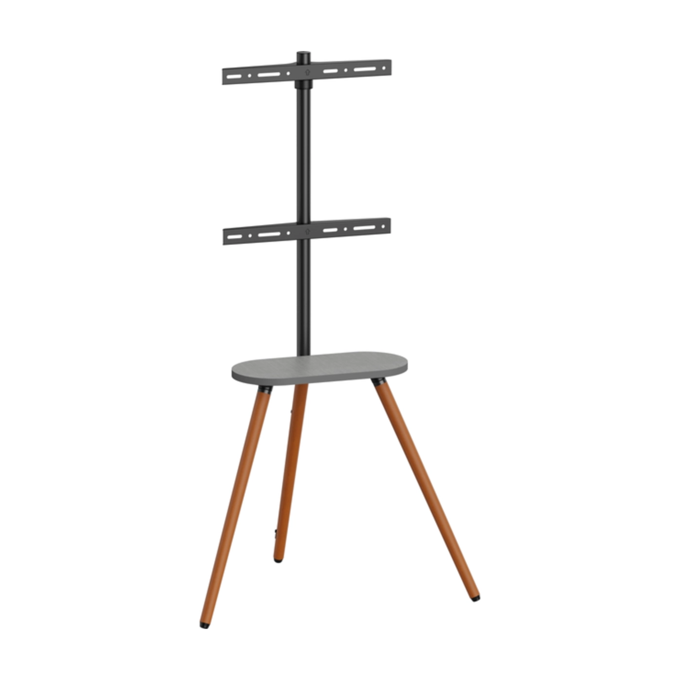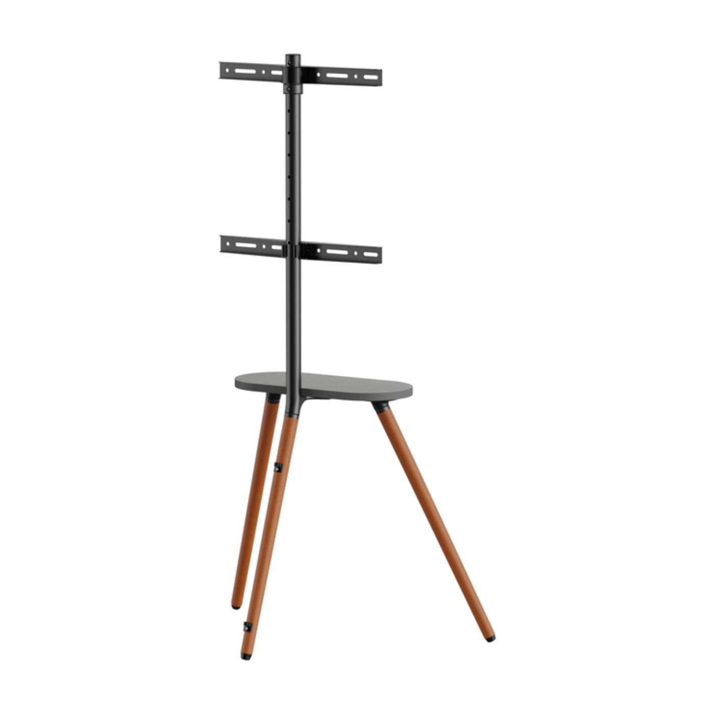 Элегантность стойки не уступает её практичности. Высококачественные материалы, такие как сталь, алюминий и древесина, гарантируют долговечность и надежность конструкции. Поддержка множества стандартов креплений VESA позволяет использовать её с большинством современных телевизоров, а максимальная нагрузка в 35 кг обеспечивает безопасное использование. Эстетически привлекательная полка служит не только для хранения аксессуаров, но и добавляет стильный акцент в общий дизайн.
